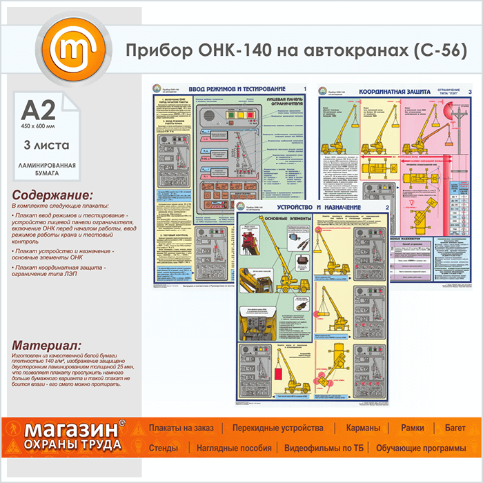 Плакаты «Прибор ОНК-140 на автокранах» (С-56, ламинированная бумага, А2, 3 листа) в Улан-Удэ купить