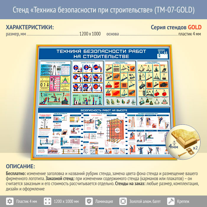 Стенд «Техника безопасности при строительстве» (TM-07-GOLD) в Улан-Удэ купить
