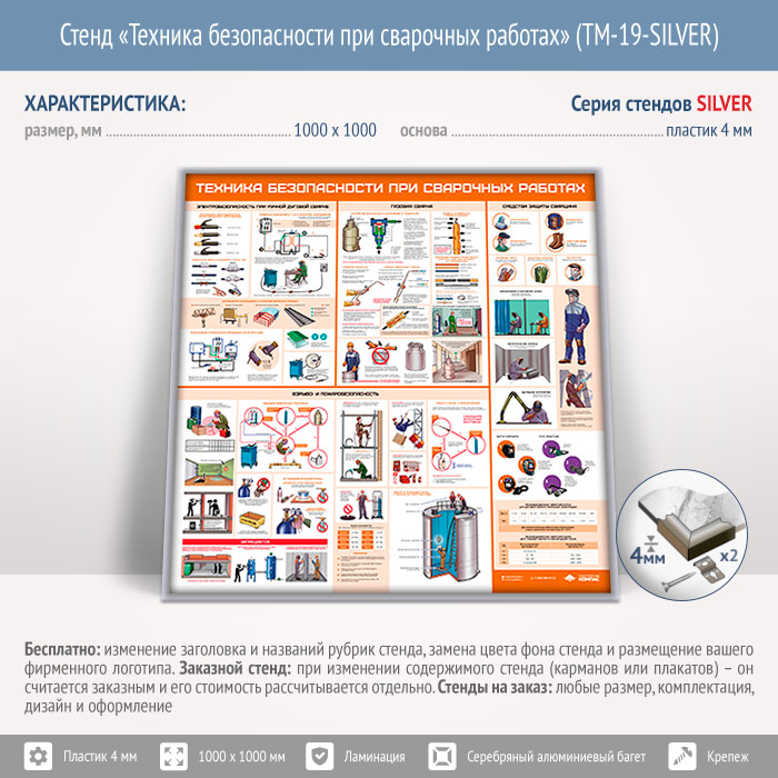 Стенд «Техника безопасности при сварочных работах» (TM-19-SILVER) в Улан-Удэ купить