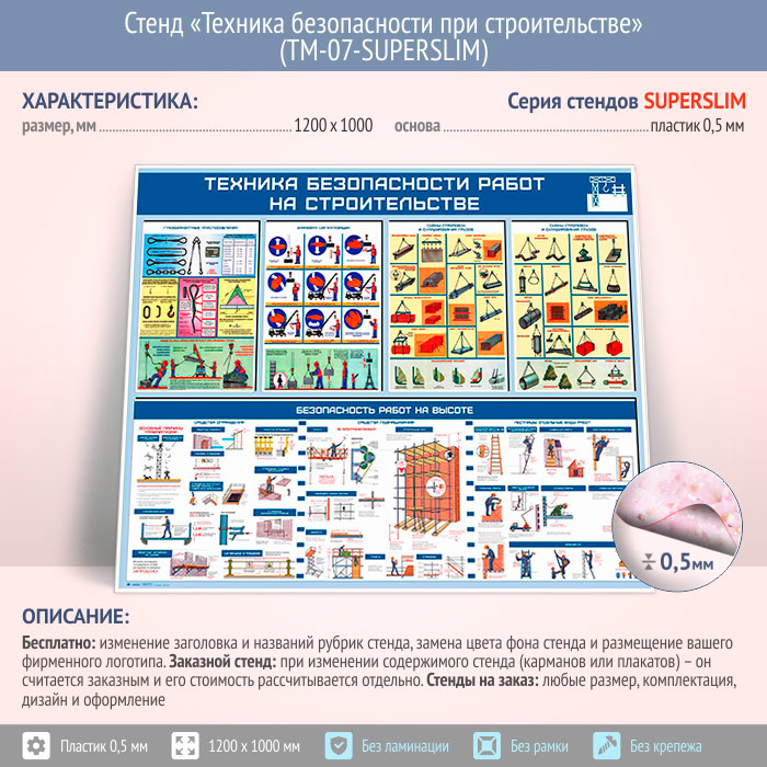 Стенд «Техника безопасности при строительстве» (TM-07-SUPERSLIM) в Улан-Удэ купить