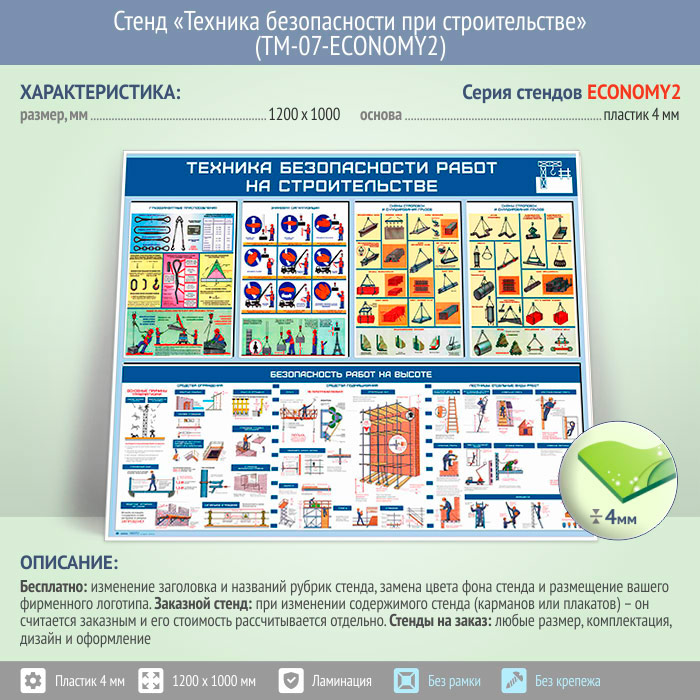 Стенд «Техника безопасности при строительстве» (TM-07-ECONOMY2) в Улан-Удэ купить