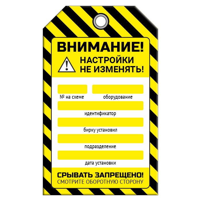 Бирка «НАСТРОЙКИ НЕ ИЗМЕНЯТЬ!» (1 шт., двусторонняя, пластик, 70х115 мм) в Улан-Удэ купить