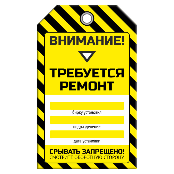 Бирка «ТРЕБУЕТСЯ РЕМОНТ!» (1 шт., двусторонняя, пластик, 70х115 мм) в Улан-Удэ купить
