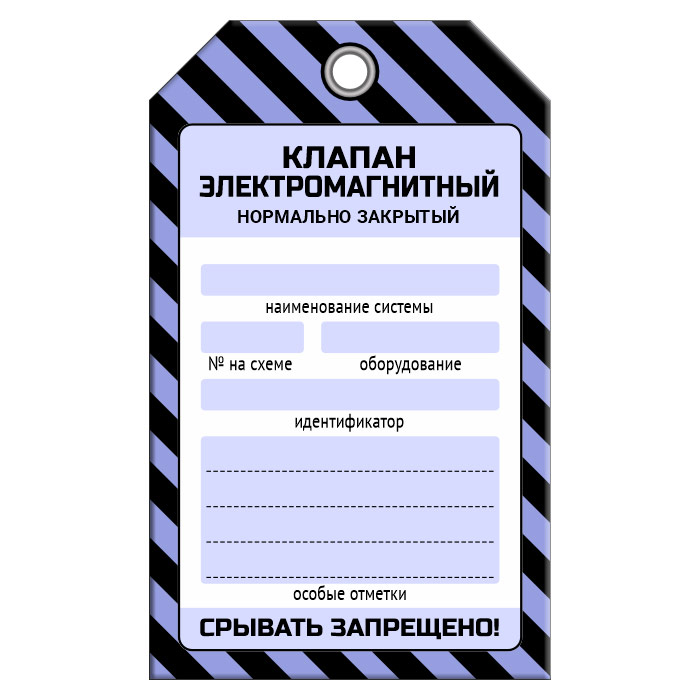 Бирка «КЛАПАН ЭЛЕКТРОМАГНИТНЫЙ НОРМАЛЬНО ЗАКРЫТЫЙ» (1 шт., односторонняя, пластик, 70х115 мм) в Улан-Удэ купить