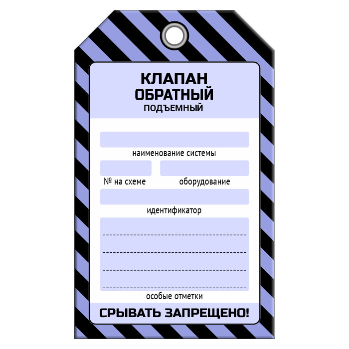 Бирка «КЛАПАН ОБРАТНЫЙ ПОДЪЕМНЫЙ» (1 шт., односторонняя, пластик, 70х115 мм) в Улан-Удэ купить