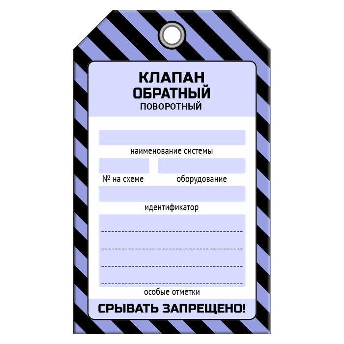 Бирка «КЛАПАН ОБРАТНЫЙ ПОВОРОТНЫЙ» (1 шт., односторонняя, пластик, 70х115 мм) в Улан-Удэ купить