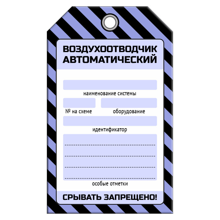 Бирка «ВОЗДУХООТВОДЧИК АВТОМАТИЧЕСКИЙ» (1 шт., односторонняя, пластик, 70х115 мм) в Улан-Удэ купить