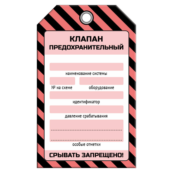 Бирка «КЛАПАН ПРЕДОХРАНИТЕЛЬНЫЙ» (1 шт., односторонняя, пластик, 70х115 мм) в Улан-Удэ купить