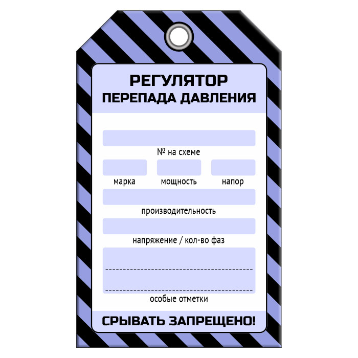 Бирка «РЕГУЛЯТОР ПЕРЕПАДА ДАВЛЕНИЯ» (1 шт., односторонняя, пластик, 70х115 мм) в Улан-Удэ купить