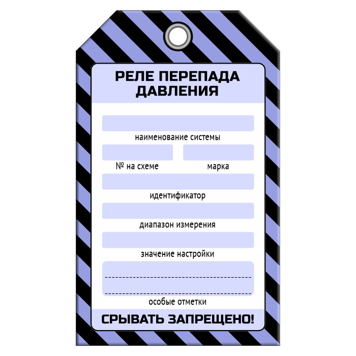 Бирка «РЕЛЕ ПЕРЕПАДА ДАВЛЕНИЯ» (1 шт., односторонняя, пластик, 70х115 мм) в Улан-Удэ купить