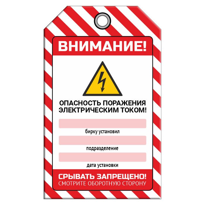 Бирка «ОПАСНОСТЬ ПОРАЖЕНИЯ ТОКОМ» (1 шт., двусторонняя, пластик, 70х115 мм) в Улан-Удэ купить