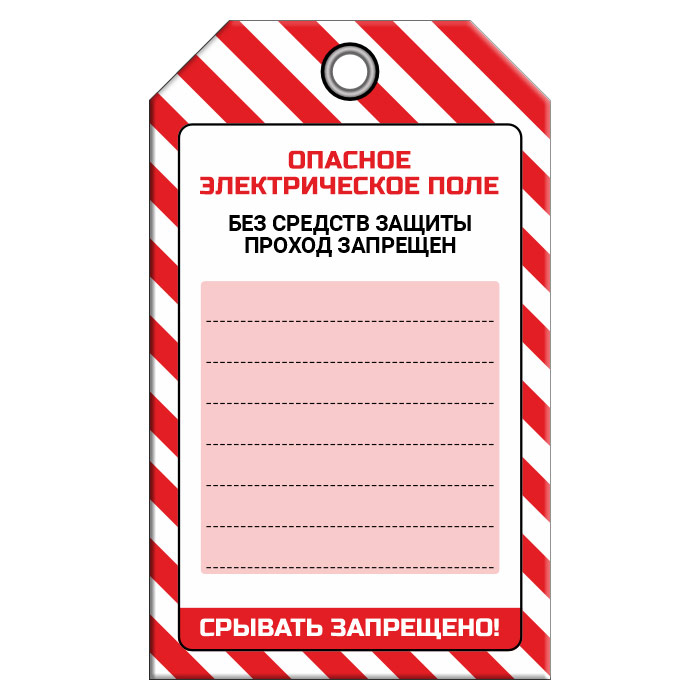Бирка «ОПАСНОЕ ЭЛЕКТРИЧЕСКОЕ ПОЛЕ» (1 шт., односторонняя, пластик, 70х115 мм) в Улан-Удэ купить