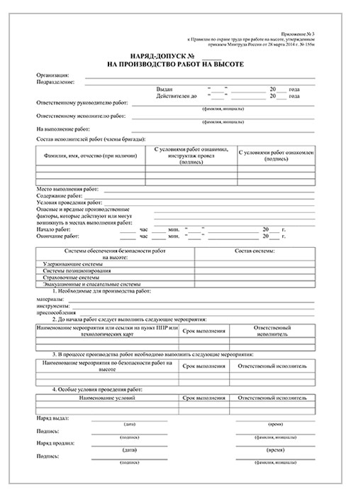 Наряд-допуск на производство работ на высоте (упаковка из 100 штук) в Улан-Удэ купить