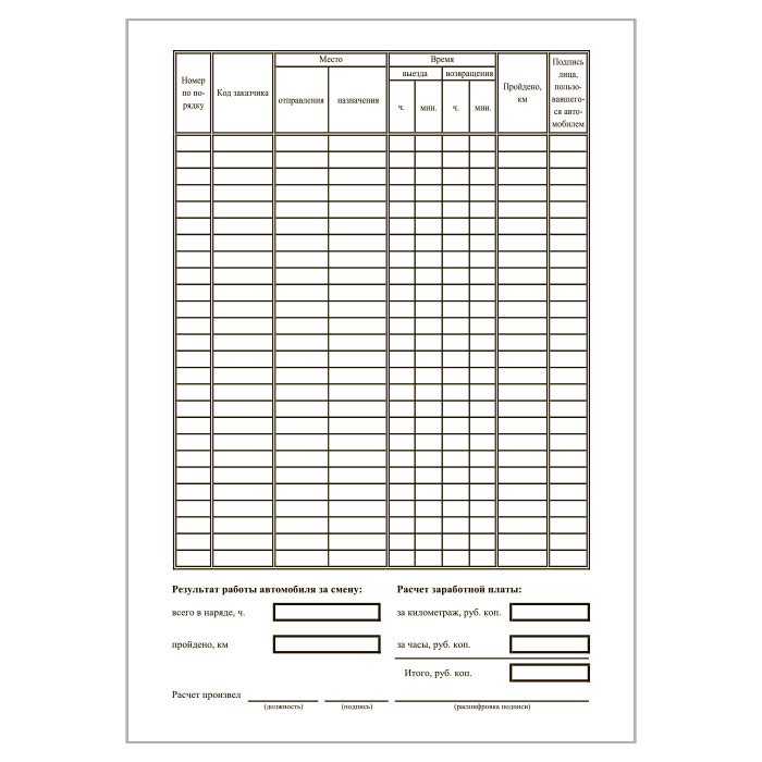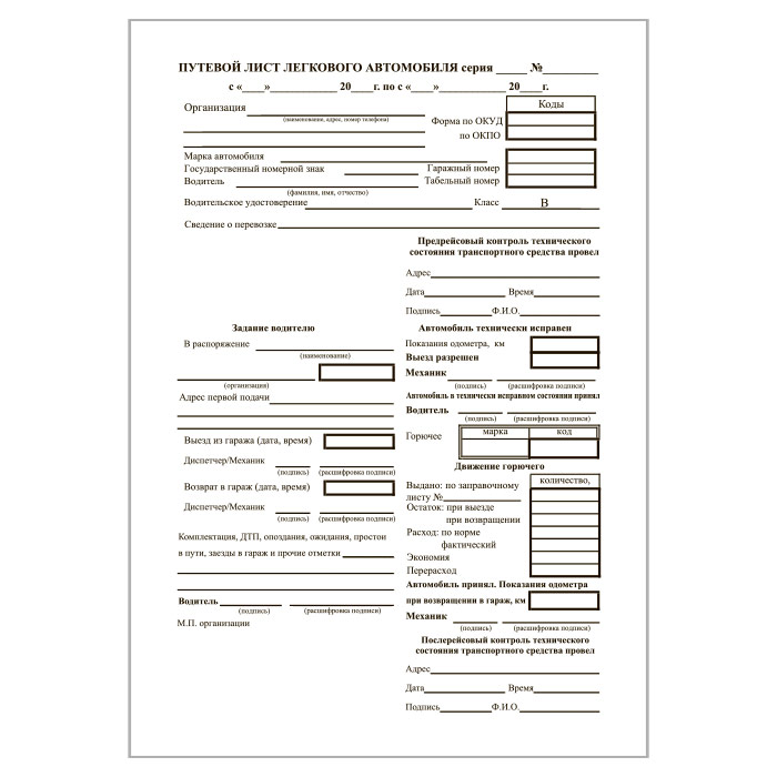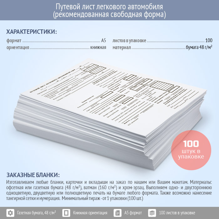 Путевой лист легкового автомобиля (рекомендованная свободная форма, упаковка из 100 штук) в Улан-Удэ купить