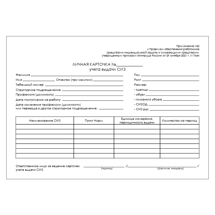 Карточка выдачи СИЗ (приказ Минтруда России от 29 октября 2021 г. №766н, упаковка 100 штук) в Улан-Удэ купить