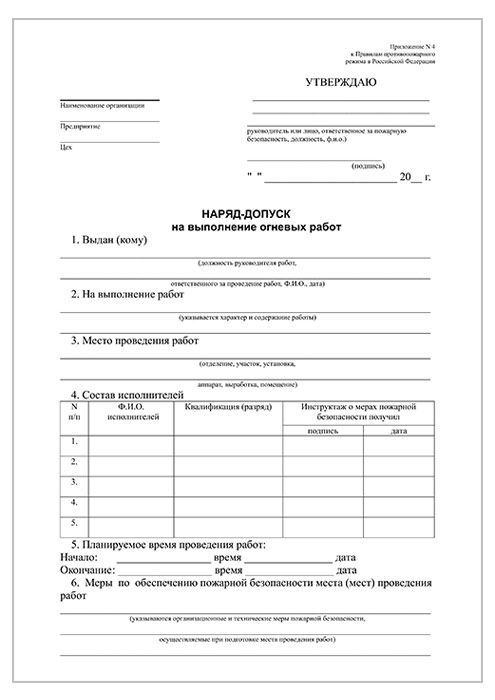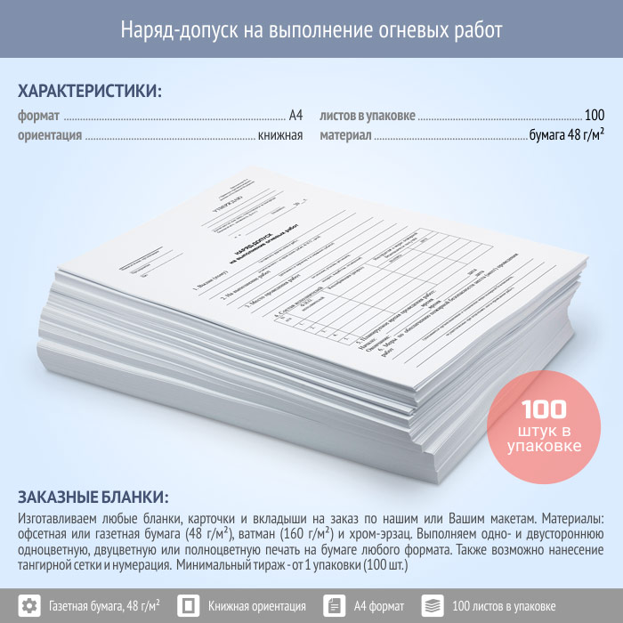 Наряд-допуск на выполнение огневых работ (упаковка из 100 штук) в Улан-Удэ купить