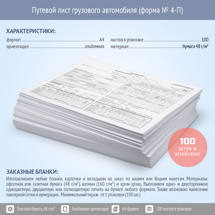 Путевой лист грузового автомобиля (форма № 4-П, упаковка из 100 штук) в Улан-Удэ купить