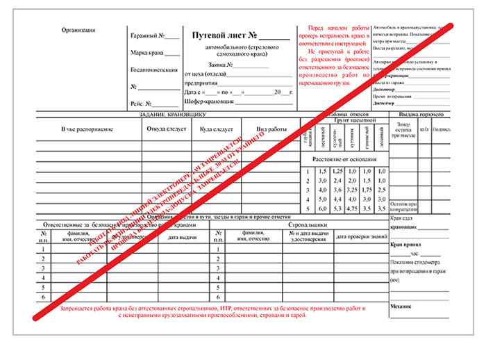 Путевой лист самоходного крана (упаковка из 100 штук) в Улан-Удэ купить