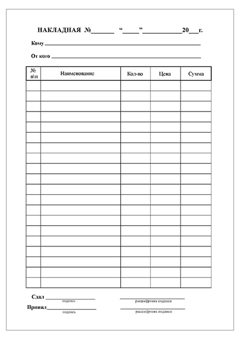 Накладная (упаковка из 100 штук) в Улан-Удэ купить