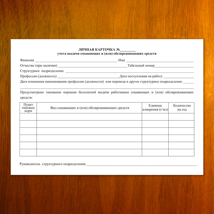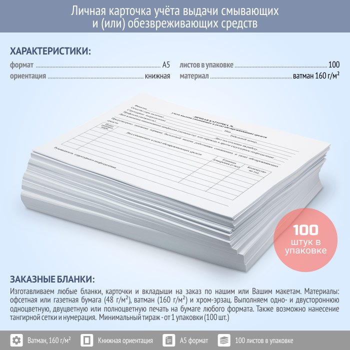 Личная карточка учёта выдачи смывающих и (или) обезвреживающих средств (упаковка из 100 штук) в Улан-Удэ купить