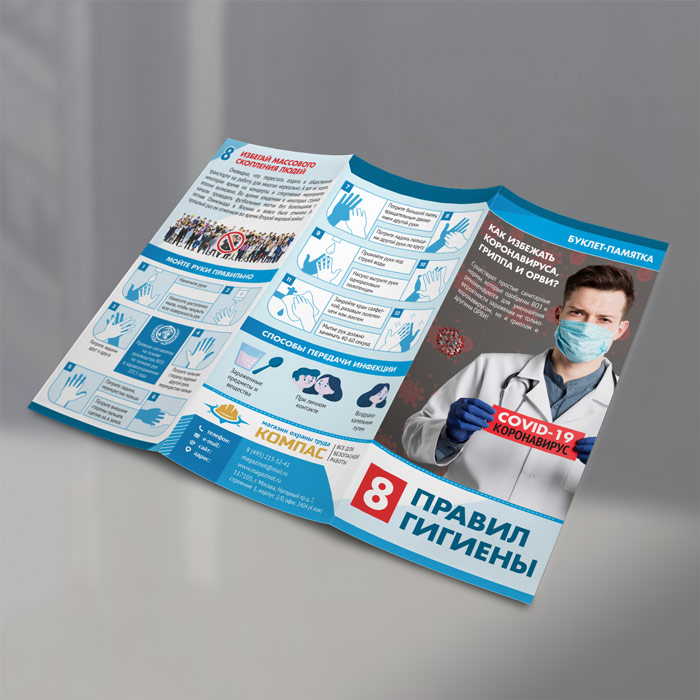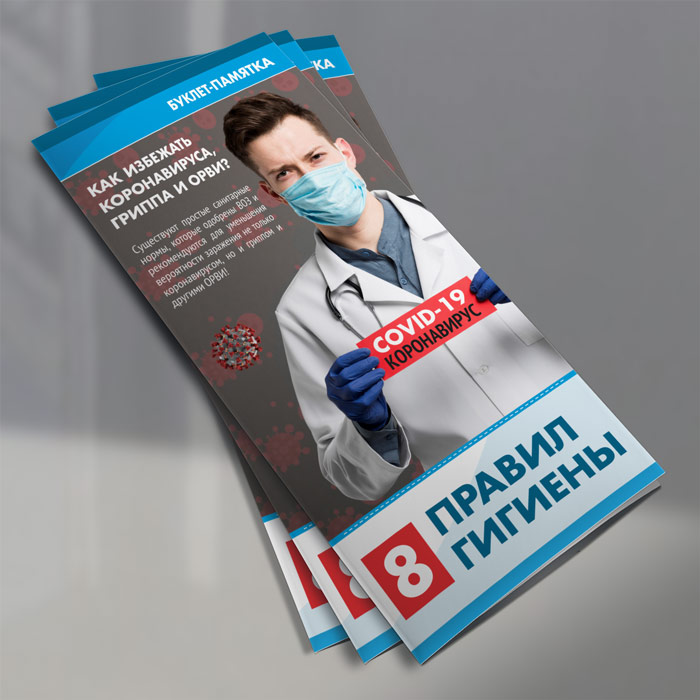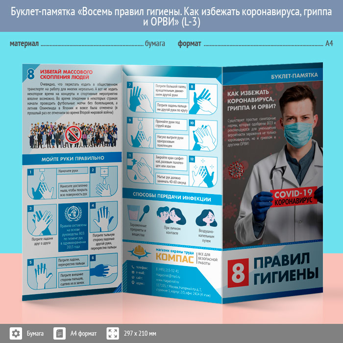 Буклет-памятка «Восемь правил гигиены. Как избежать коронавируса, гриппа и ОРВИ» (L-3) в Улан-Удэ купить