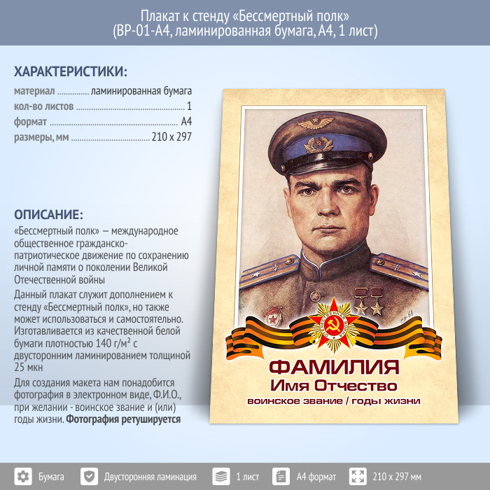 Плакат к стенду «Бессмертный полк» + ретушь фото (BP-01-A4, ламинированная бумага, А4, 1 лист) в Улан-Удэ купить