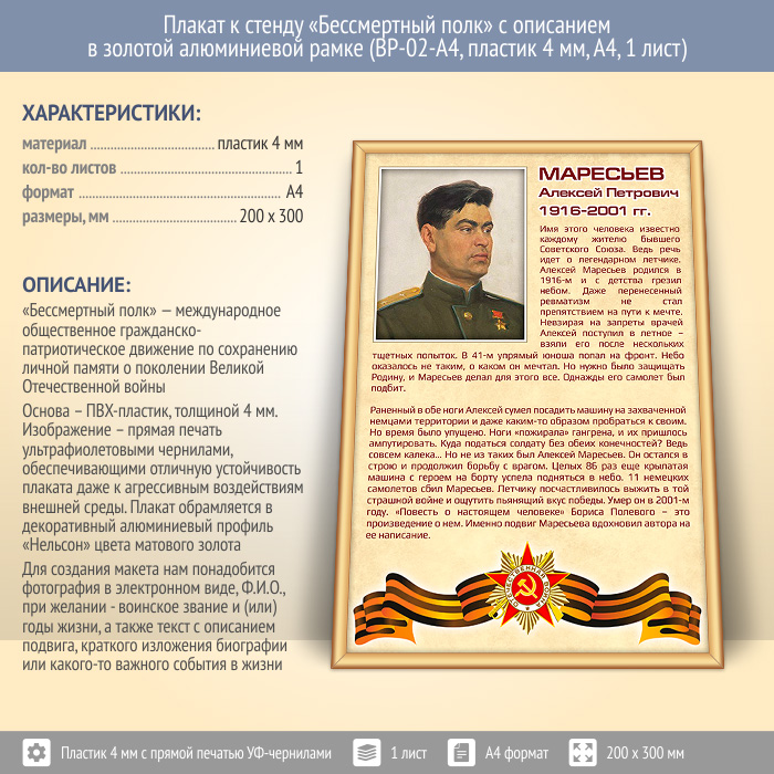 Плакат к стенду «Бессмертный полк» с описанием в золотой (матовой) алюминиевой рамке (BP-02-A4, пластик 4 мм, А4, 1 лист) в Улан-Удэ купить