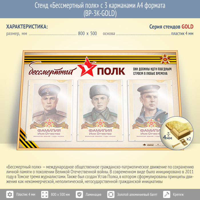Стенд «Бессмертный полк» с 3 карманами А4 формата (BP-3K-GOLD) в Улан-Удэ купить