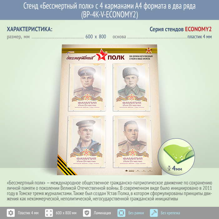 Стенд «Бессмертный полк» с 4 карманами А4 формата в два ряда (BP-4K-V-ECONOMY2) в Улан-Удэ купить
