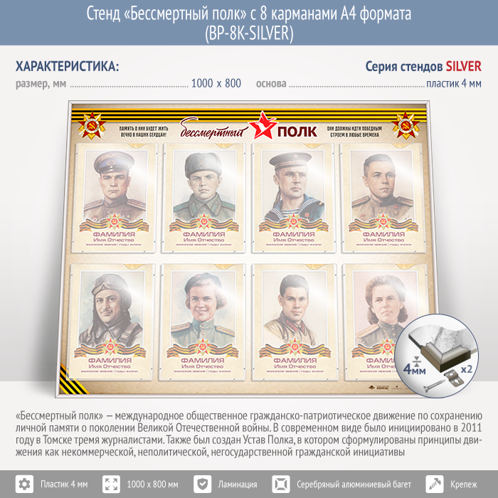Стенд «Бессмертный полк» с 8 карманами А4 формата (BP-8K-SILVER) в Улан-Удэ купить