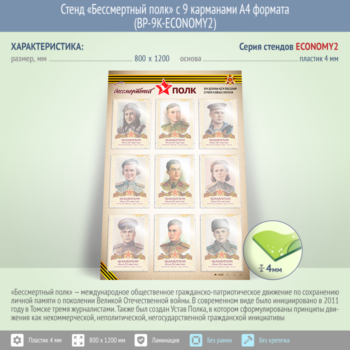 Стенд «Бессмертный полк» с 9 карманами А4 формата (BP-9K-ECONOMY2) в Улан-Удэ купить