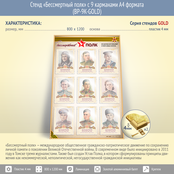Стенд «Бессмертный полк» с 9 карманами А4 формата (BP-9K-GOLD) в Улан-Удэ купить