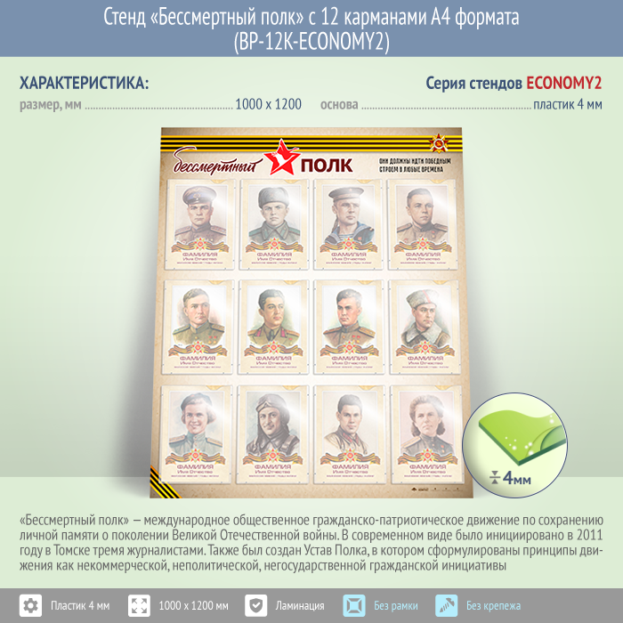 Стенд «Бессмертный полк» с 12 карманами А4 формата (BP-12K-ECONOMY2) в Улан-Удэ купить