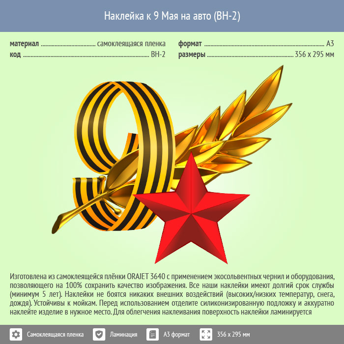 Наклейка к 9 Мая на авто А3 формата (BH-2) в Улан-Удэ купить