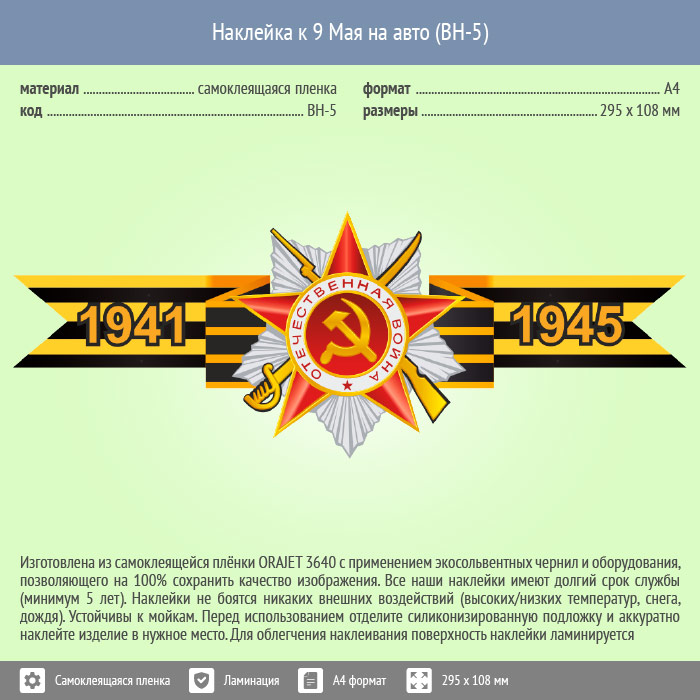 Наклейка к 9 Мая на авто А4 формата (BH-5) в Улан-Удэ купить