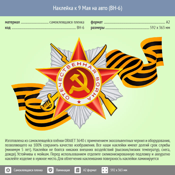 Наклейка к 9 Мая на авто А2 формата (BH-6) в Улан-Удэ купить