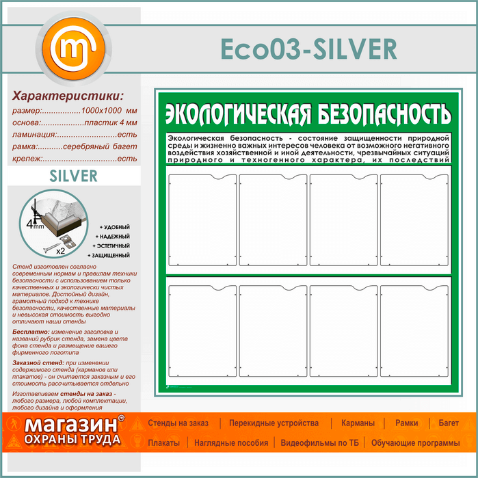 Стенд «Экологическая безопасность» с 8 карманами (ECO-03-SILVER) в Улан-Удэ купить