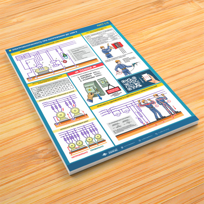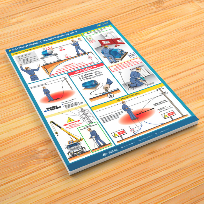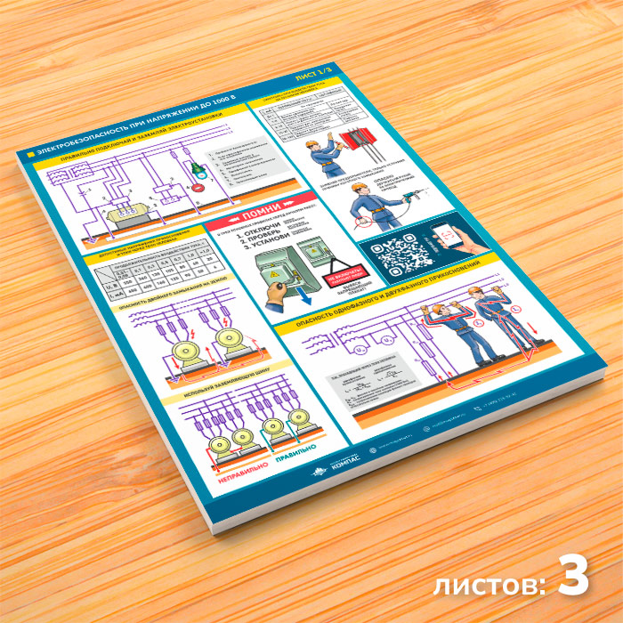 Плакаты «Электробезопасность при напряжении до 1000В» (М-64, ламинированная бумага, А2, 3 листа) в Улан-Удэ купить