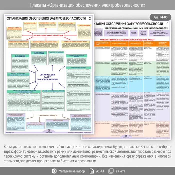 Плакаты «Организация обеспечения электробезопасности» (М-03, 2 листа) в Улан-Удэ купить