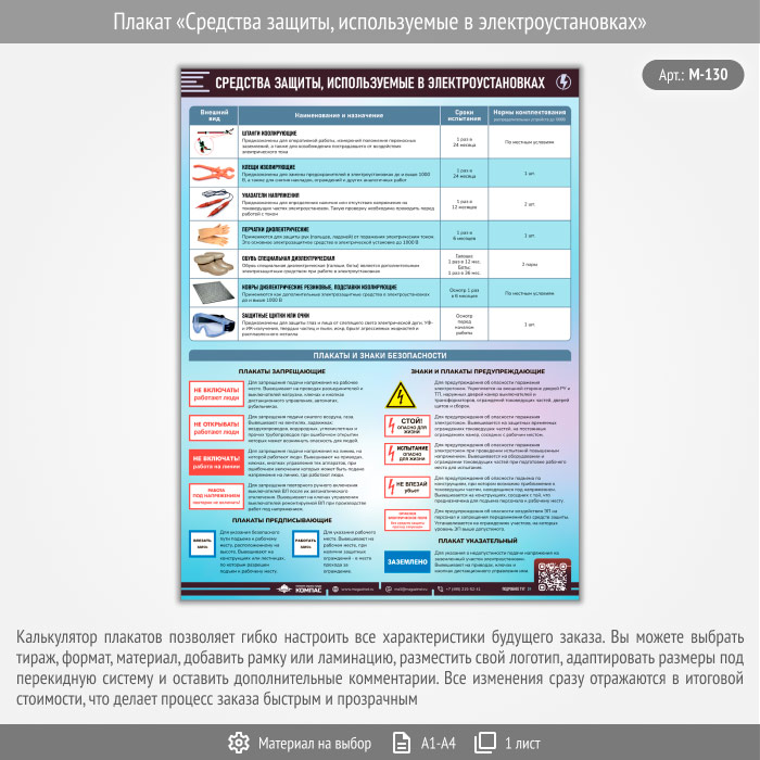 Плакат «Средства защиты, используемые в электроустановках» с QR (М-130, 1 лист) в Улан-Удэ купить