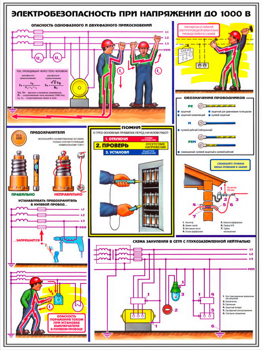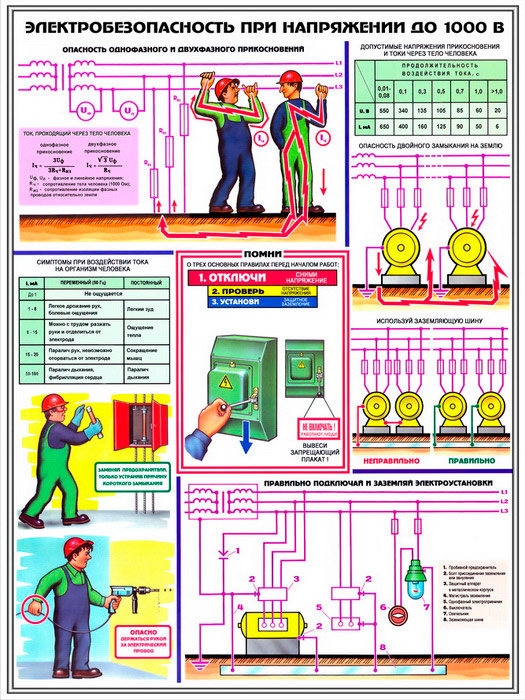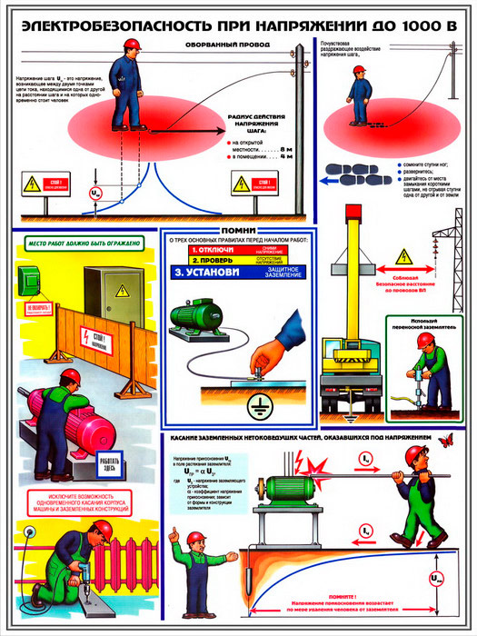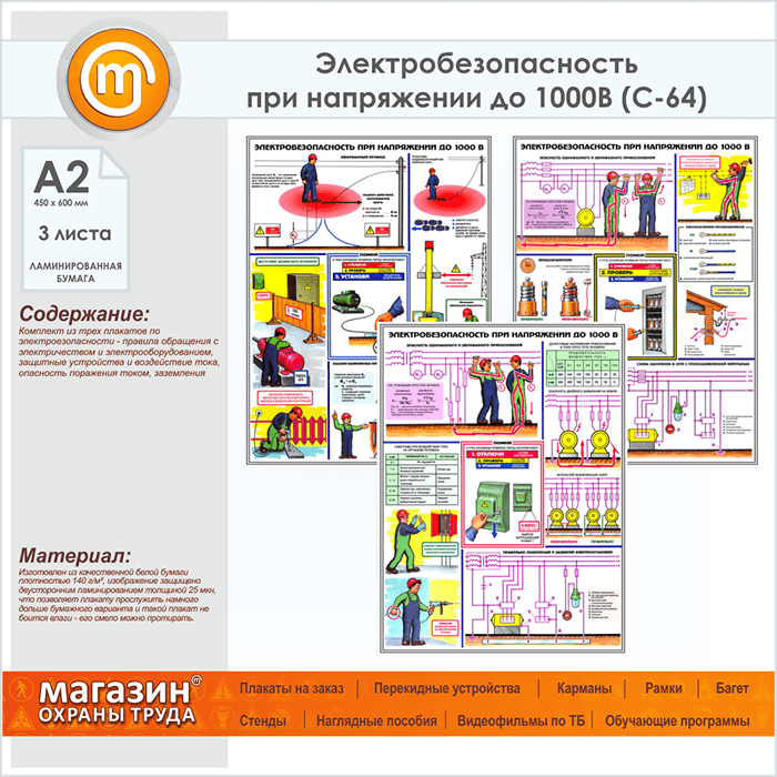 Плакаты «Электробезопасность при напряжении до 1000В» (С-64, ламинированная бумага, А2, 3 листа) в Улан-Удэ купить