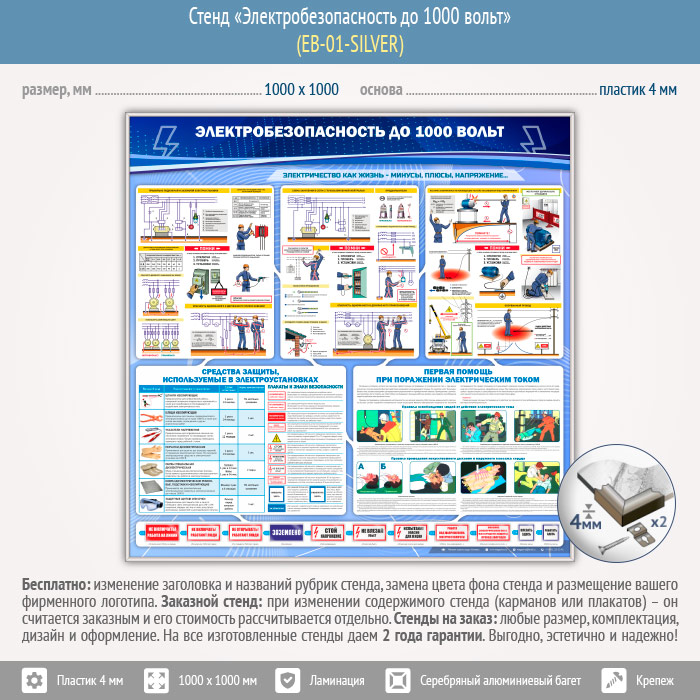 Стенд «Электробезопасность до 1000 вольт» (EB-01-SILVER) в Улан-Удэ купить
