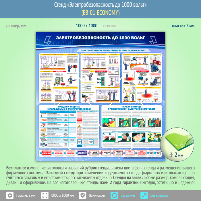 Стенд «Электробезопасность до 1000 вольт» (EB-01-ECONOMY) в Улан-Удэ купить