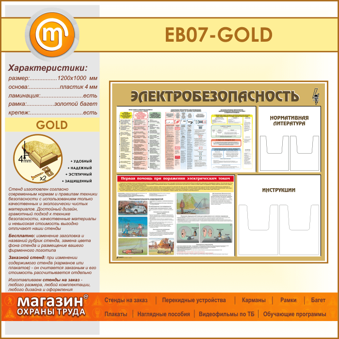 Стенд «Электробезопасность» с 4 объемными карманами (EB-07-GOLD) в Улан-Удэ купить