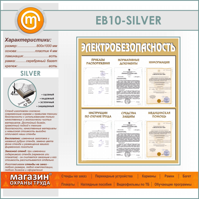 Стенд «Электробезопасность» с 6 карманами (EB-10-SILVER) в Улан-Удэ купить