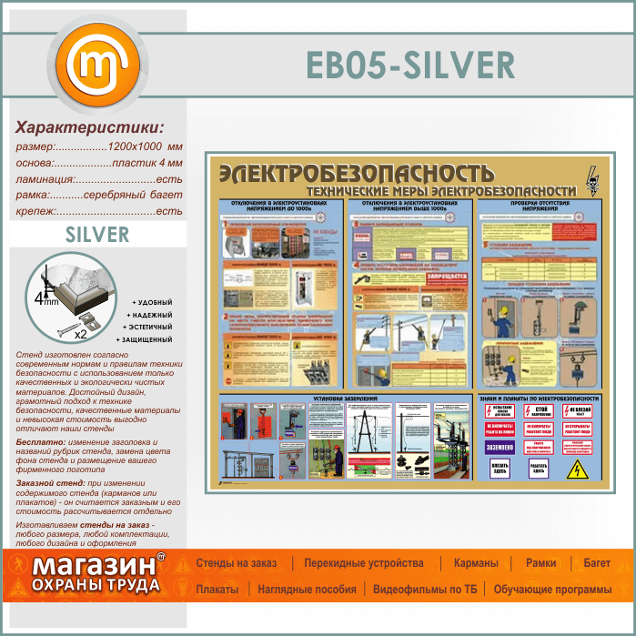 Стенд «Электробезопасность. Технические меры электробезопасности» (EB-05-SILVER) в Улан-Удэ купить