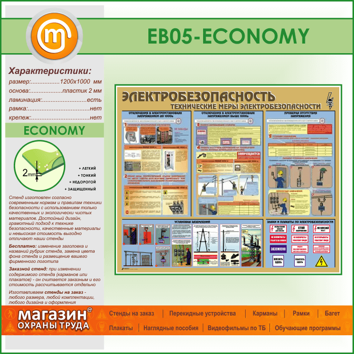 Стенд «Электробезопасность. Технические меры электробезопасности» (EB-05-ECONOMY) в Улан-Удэ купить
