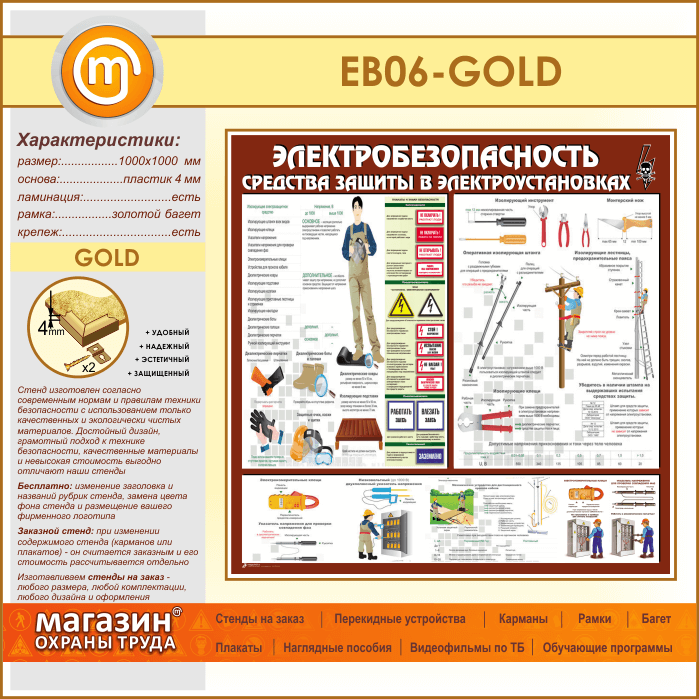 Стенд «Электробезопасность. Средства защиты в электроустановках» (EB-06-GOLD) в Улан-Удэ купить