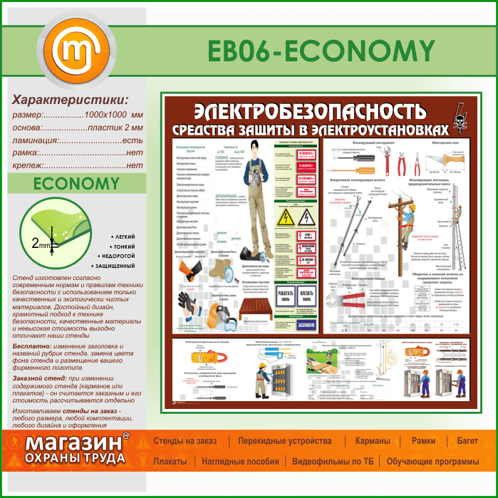 Стенд «Электробезопасность. Средства защиты в электроустановках» (EB-06-ECONOMY) в Улан-Удэ купить