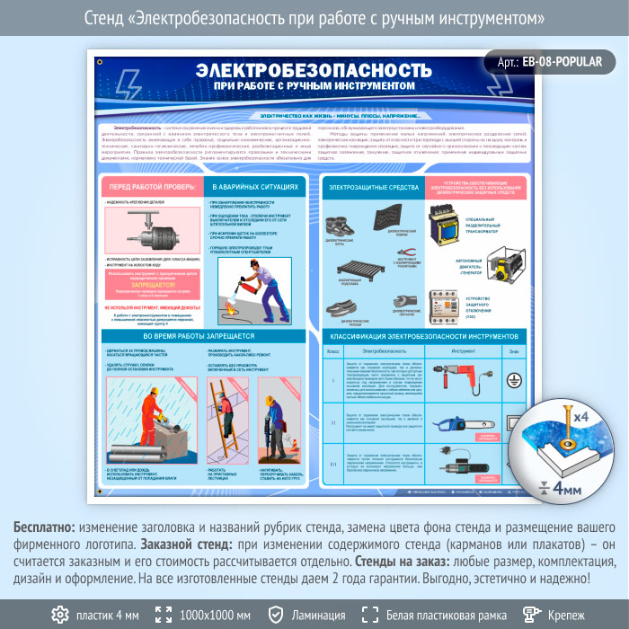 Стенд «Электробезопасность при работе с ручным инструментом» (EB-08-POPULAR) в Улан-Удэ купить
